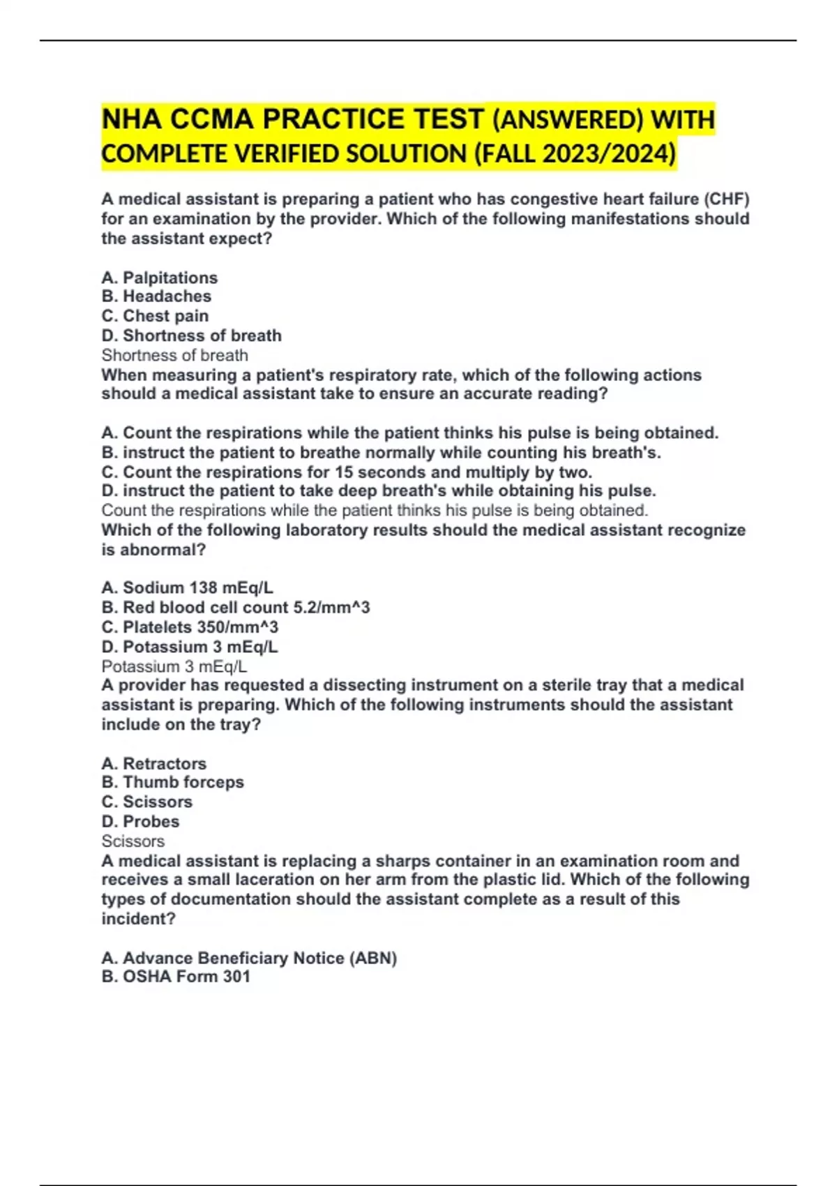 Quiz Yourself With Questions And Answers For Ccma 2024 Nha Practice Exam, So You Can Be Ready For Test Day.